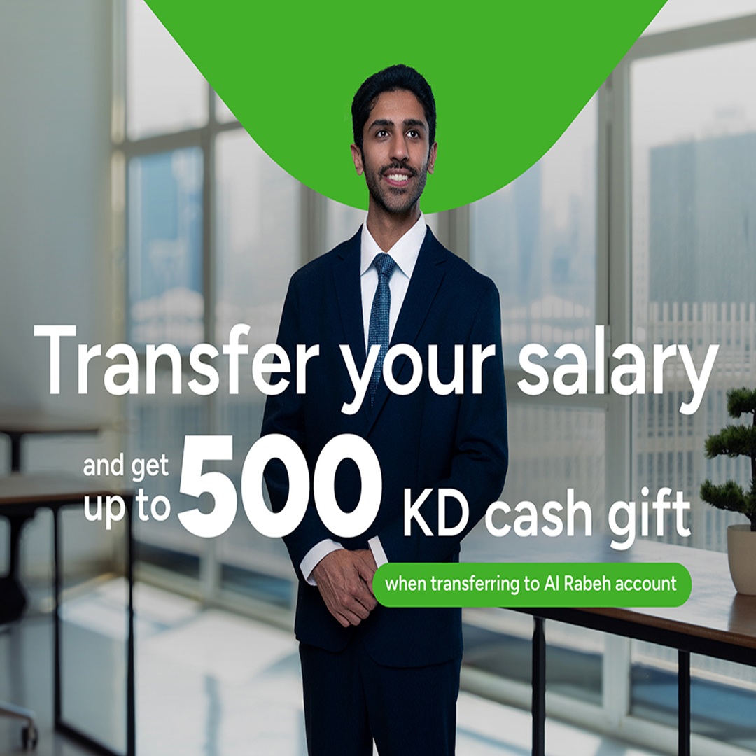 Guaranteed cash gift to every Kuwaiti customer with a salary of KD 500 and above upon transfer to Al-Rabeh account: