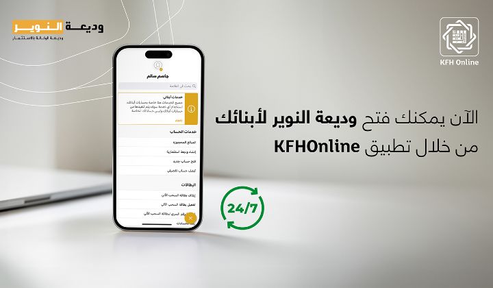 اعلن بيت التمويل الكويتي "بيتك" عن اتاحة الفرصة امام الاباء لفتح وديعة "النوير" لابنائهم الكترونيا عبر تطبيق kfh online تسهيلا على العملاء وضمن توجه رقمنة جميع الخدمات والمنتجات بما يوفر افضل تجربة مصرفية وفق احدث ...