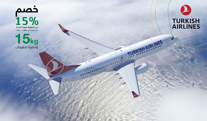 يقدم بيت التمويل الكويتي "بيتك"، خصما خاصا بواقع 15% من قيمة التذاكر بالتعاون مع الخطوط الجوية التركية، لجميع حاملي بطاقات "بيتك" فيزا أو ماستركارد السحب الآلي والائتمانية ومسبقة الدفع، ويبدأ الحجز من 25 يناير حتى 25 ...